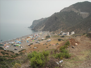Then we needed to leave Al Hoceima and go back to Tangier. The road was good, along the coast and again, so wonderful view overall over the sea. There down was smaller or bigger bays but overall crowded of the people and tents.